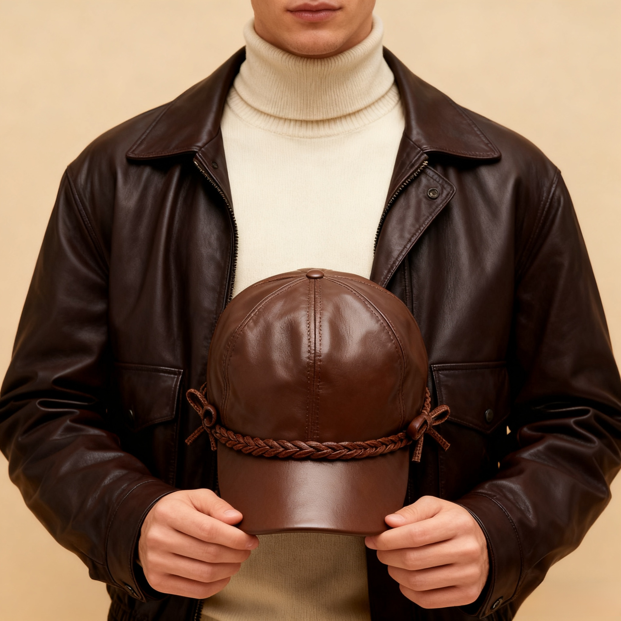 고급 레더 리본 버킷햇 착용 이미지